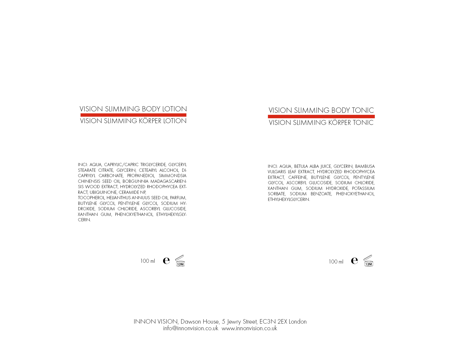 VISION SLIMMING BODY LOTION 100ml VISION SLIMMING BODY TONIC 100ml